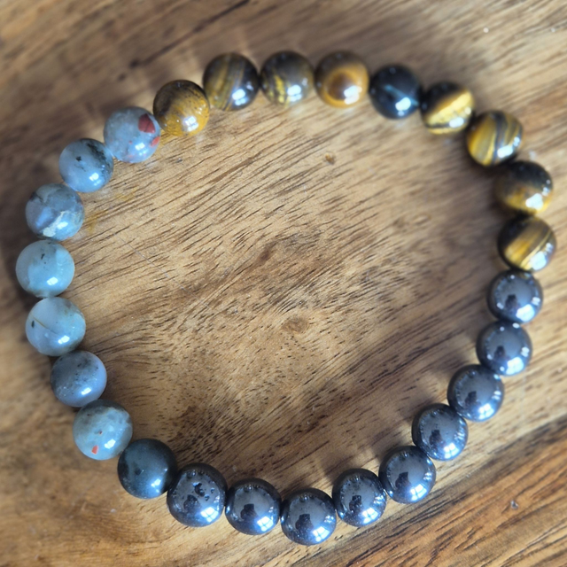 Warrior’s Vision Bracelet – Tiger’s Eye, Labradorite & Bloodstone Crystal Jewellery for Grounding, Intuition & Vitality